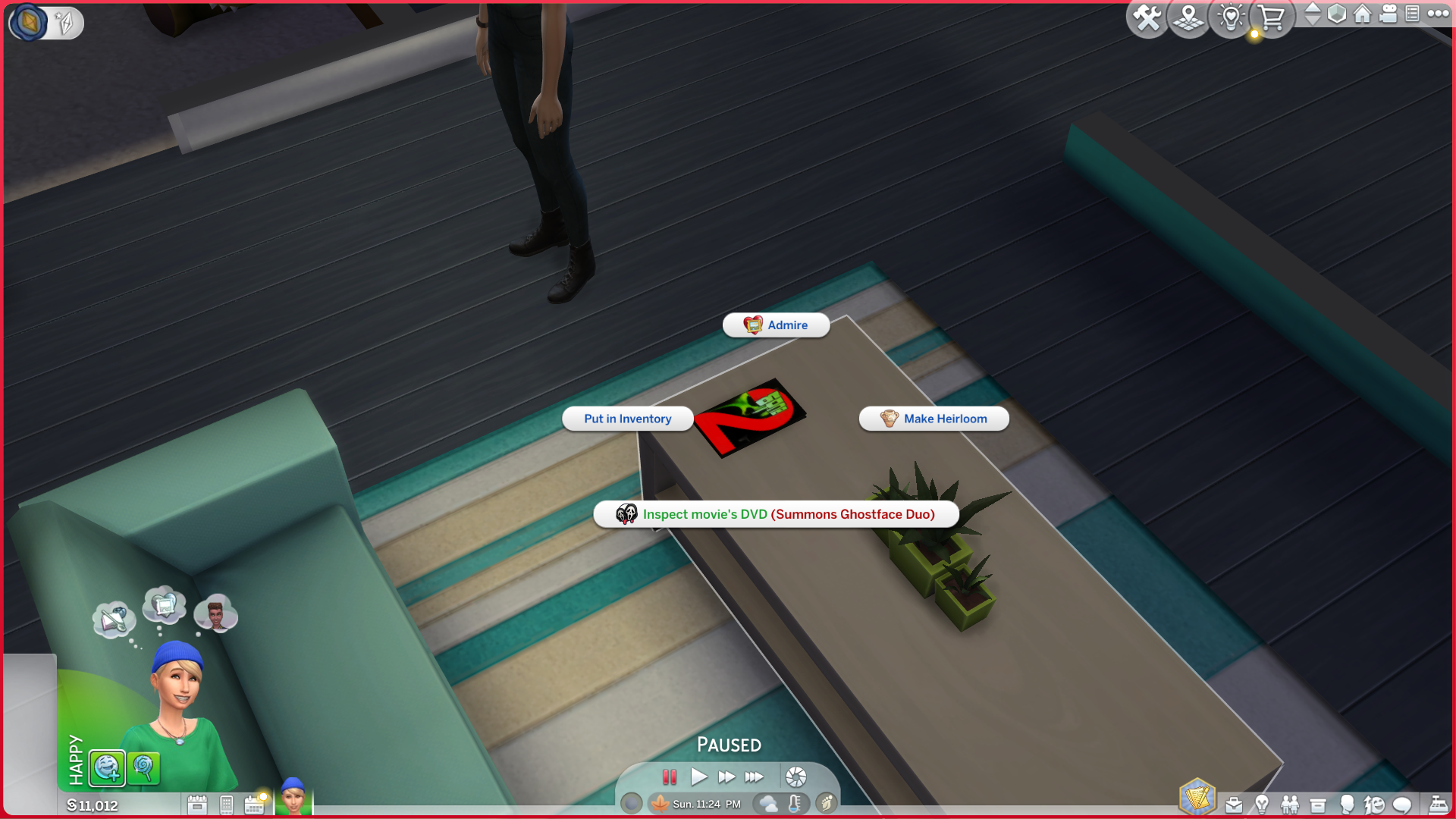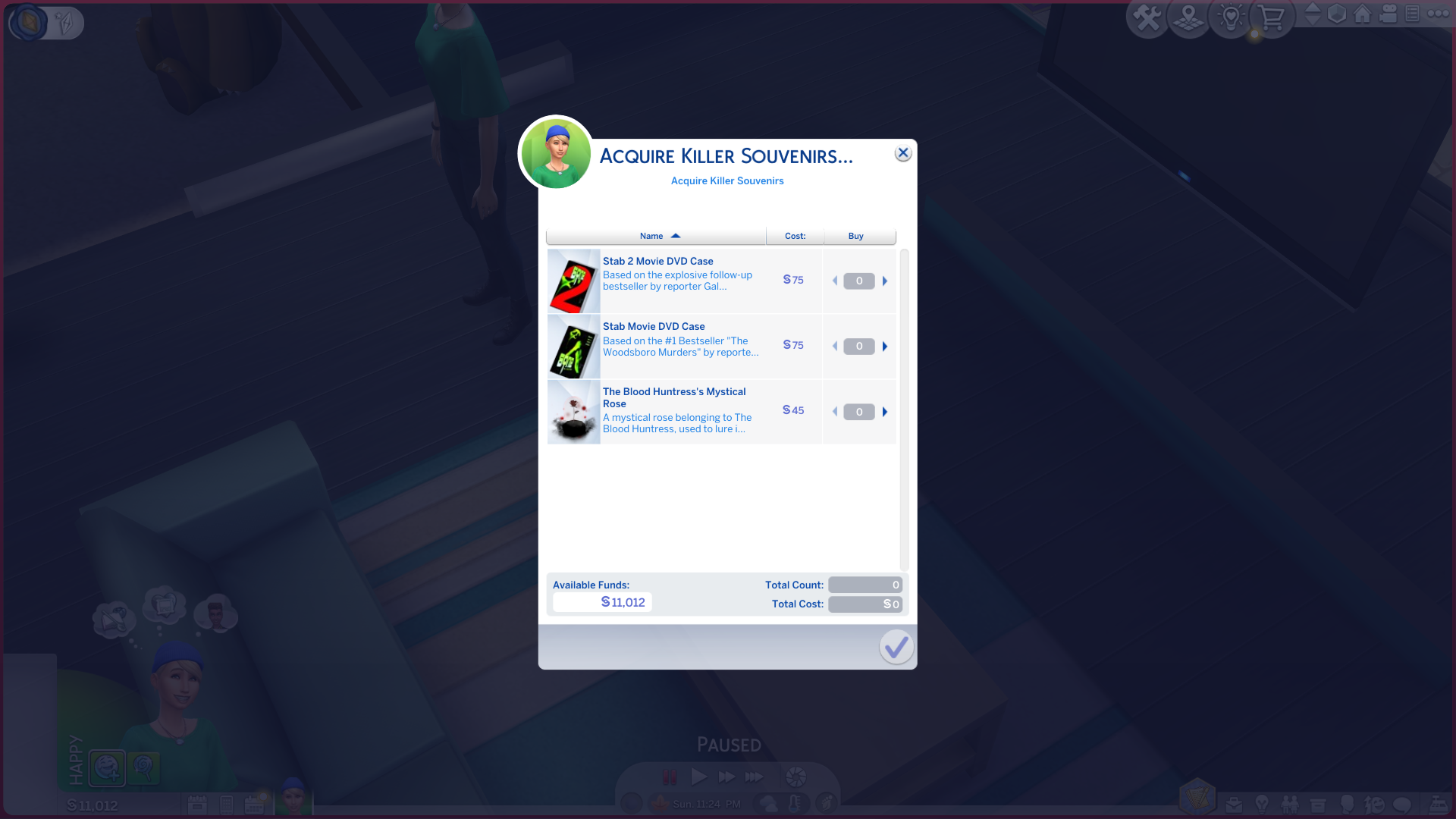 - You can purchase the Stab Movie DVD case by clicking on your sim > Nights Of Terror > Acquire Killer Souvenirs.