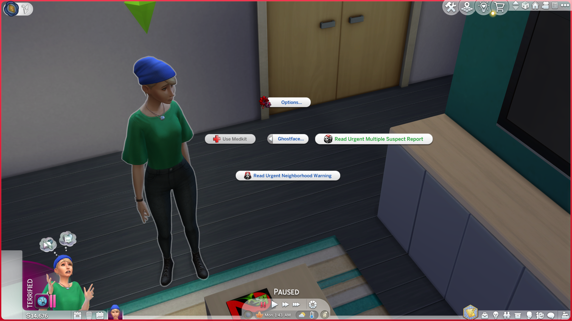 - You can turn your sim into Ghostface and unlock the exclusive Ghostface interactions from the mod's options.